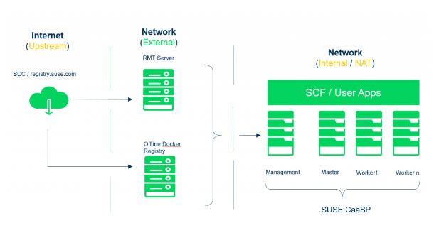 主机服务器应最低配置 4GB RAM、2个 VCPU、40 GB 磁盘空间来托管私有 Docker 注册表。如果您想要下载较大的镜像(如 SUSE Application Delivery Platform),则需要超过 100 GB 的磁盘空间。
