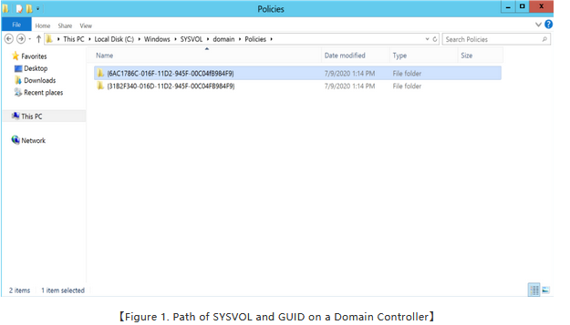 【Figure 1. Path of SYSVOL and GUID on a Domain Controller】