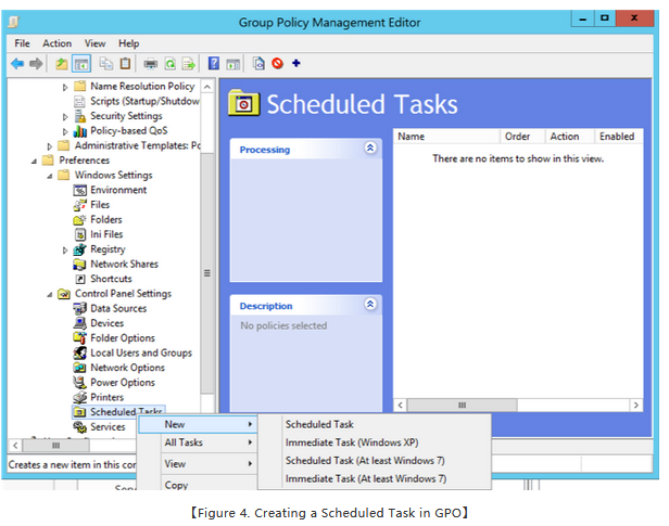 一些设置还可以引用外部路径,这些路径可能不具有与 GPO 相同的安全访问权限。这样,如果它们不能修改 GPO,但是可以访问引用的路径,便可以用恶意文件替换合法文件。下图说明了如何手动创建可立即计划的任务。