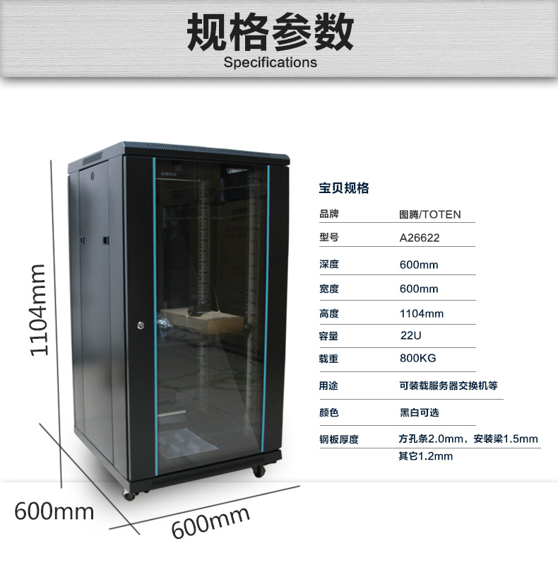 图腾TOTEN G26622 网络机柜 加厚22U 19英寸标准网络机柜A2.6622